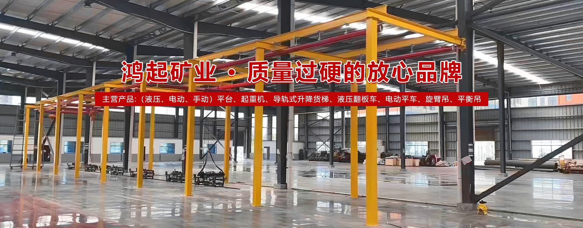 河南省鴻起礦業起重機械有限公司始建于2011年,是生產登高設備、起重機配件的廠家,先后榮獲“質量過硬放心品牌”、“AAA 級企業”、“**企業”及“質量管理**企業”等榮譽稱號。公司擁有經驗豐富的科技人員和技術隊伍,技術力量雄厚,生產設備精良,工藝**,檢測設備齊全,安全性能達標,產品輻射全國二十多個省、市、自冶區,在同類產品中享有較高的聲譽。  本公司實力雄厚、技術**,主營產品類型有(液壓、電動、手動)平臺、單雙梁起重機、門式起重機、橋式起重機、KPK起重機、液壓平衡器、防墜器、導軌式升降貨梯、液壓翻板車、電動平車、旋臂吊、平衡吊:電纜卷筒、起得機配件等非標設備制作及維修業務。本公司秉承“嚴格、踏實、上進、創新”的企業精神,不斷發展頭大,深受廣大用戶的好評和依賴。  本公司經營宗旨:“以誠為本,以信取人,以質量求生存,以信譽求民展”。  二十一世紀是知識經濟的時代,競爭與發展共存,機遇與挑戰同在,鴻起人將以朝代的科技,以國際化的服務,以國際化的質量,以敏銳的目光、昂揚的姿勢面向世界,面向一個更加廣闊的時代和未來。  實力鑄就品牌,服務創造未來,董事長段建召攜全體員工向各界朋友和新老用戶致意,熱烈歡迎各位朋友惠顧洽談業務、指導工作,共創更加美好的明天! [了解詳情]
